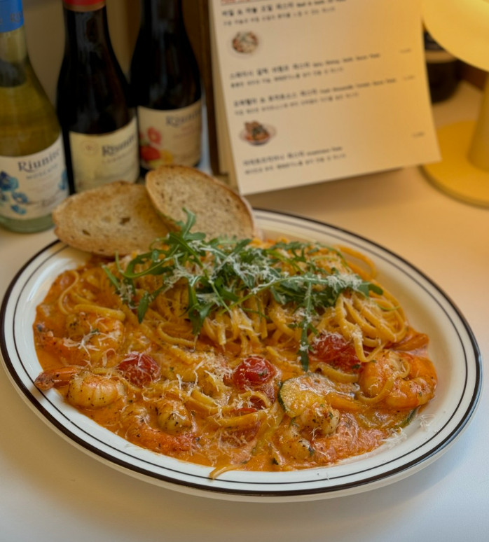 식사가 아주 만족스러웠습니다. 로제 소스가 진하고 크리미하면서도 느끼하지 않아 끝까지 깔끔하게 먹을 수 있었습니다. 면도 잘 삶아져서 전체적인 완성도가 높았습니다.