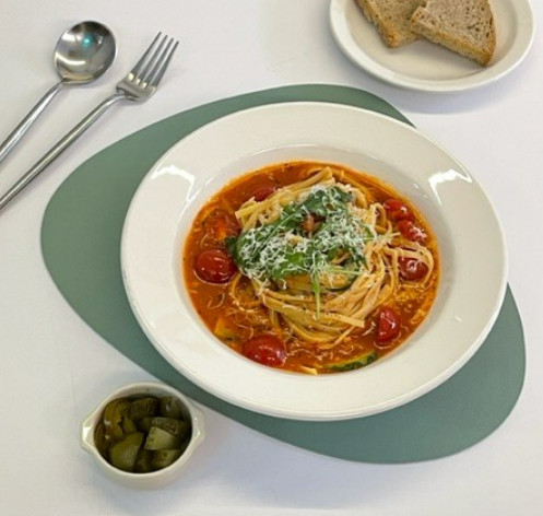 바질오일 파스타는 향긋하면서 담백해서 부담 없이 먹기 좋았습니다. 소스가 잘 배어 있어 따로 간을 하지 않아도 충분했으며 플레이팅도 예뻤습니다.